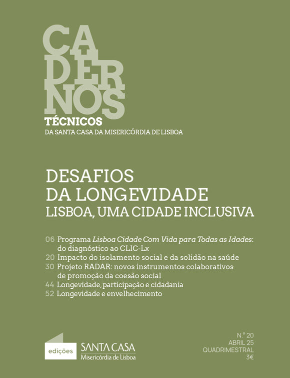 With Portugal having one of the highest aging indices in the world, reflection on this issue is imperative. In this sense, the Santa Casa da Misericórdia of Lisbon contributes here by sharing the vast experience resulting from its intervention in this specific area. At the same time, it gives voice to some of the partners with whom the institution works, in an extensive network, aiming to build an inclusive and plural society, where everyone, without exception, can see their real rights to participation guaranteed.