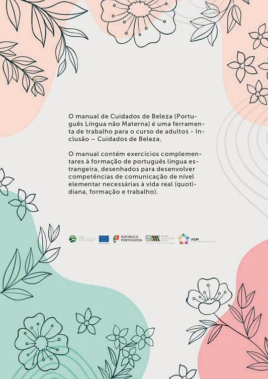 In this way, the manual is designed to guide the process of constructing explicit and conscious grammatical representations and the acquisition of vocabulary and expressions from everyday life and the professional area of Beauty Care in an integrated manner. It aims to provide a working tool that allows the learner to communicate at a basic level in various situations (everyday life, training, and work), developing skills in listening comprehension, oral production, oral interaction, reading comprehension, and writing.